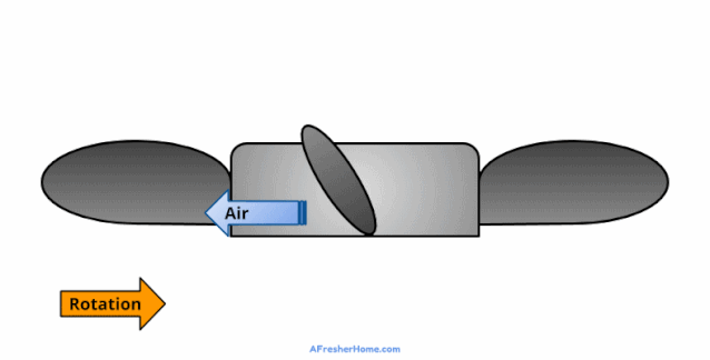 如上图,从平行于旋转面的俯视角看,扇叶向右下倾斜(),且旋转方向也向右(→),那么空气就会被扇叶往前推(俯视角),同时扇叶后方形成低压区,周围相对高压的空da气被补充进来,在风扇的推动下,持续向前出风。反之,如果旋转方向向左(←),风就会朝后吹。风扇的转向一般是固定的,也有一些风扇可以控制扇叶的旋转方向,从而实现向前或向后吹。