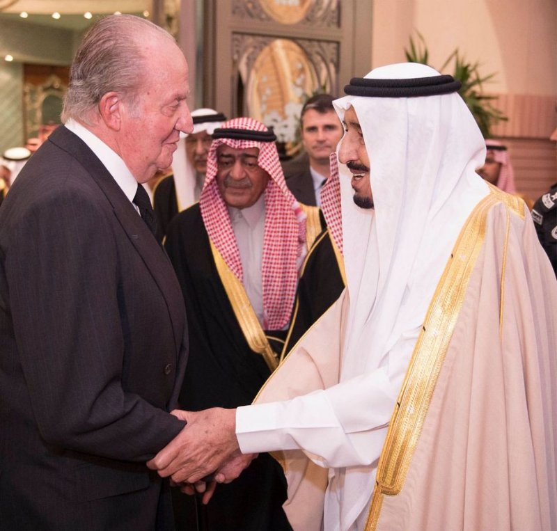 2015年1月,退位不久的胡安·卡洛斯一世访问沙特,受到沙特新国王萨勒曼的热烈欢迎。