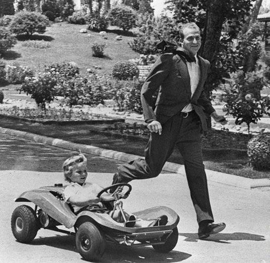 胡安·卡洛斯一世年轻时陪儿子费利佩玩耍。
