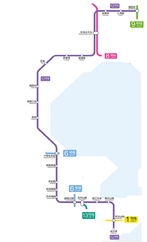 目前,青岛地铁2号线、3号线、11号线、13号线一期和二期南段都已开通运行,预计到2020年底,1号线北段、8号线北段也将开通通车。