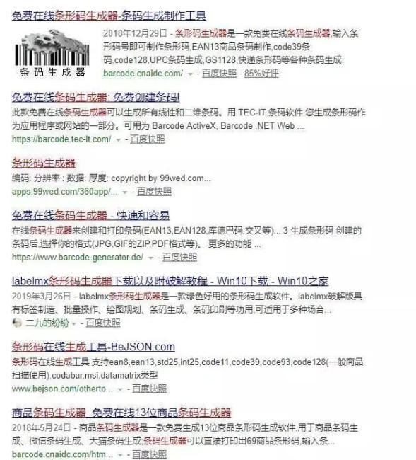 搜索条形码生成器即可出现大量网页