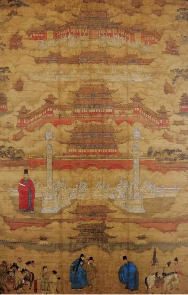 因此在研究历史中的“门”的时候,我们需要考虑它的实用性与象征性的关系。这二者不是对立的,但在不同历史环境下总是发生变化,以特殊方式连在一起。除了所含的各种“纪念碑性”之外,“门” 的另一种非常重要的象征意义是它作为“界阈”的意义。“界阈”是英文术语“liminal space”的汉译。我以为翻译得很好,因为“阈”在 中国古文中就是“门槛”,而在人类学理论中有关“liminal space”的理论中,“门槛”(threshold)也是一个中心概念。“界阈”和“边界”不一样——它并不是标志一个空间的范围和极限,而是把一个空间和另一个空间连接起来,从一个空间到另一个空间转换(图4)。这种连接和转换也就是“门”在建筑和画像中的一个极为重要的意义之所在。在画像中,门阙可以代表生死之间的界限,也可以代表从凡间到天界的入口(图5)。礼仪建筑中的每个门都含有特殊意义。就以明清北京中轴线上的许多门看,从永定门、正阳门、大明门(或大清门)、天安门、端门、午门、太和门、神武门、地安门,等等,标志出一连串的空间转换(图6)。转换的空间包括从城外到城里,从外城到内城,从内城到皇城,从皇城到紫禁城,从紫禁城中的边缘到它的 核心地区,最后再从皇城出去到达地安门外的公共领域。一些明代描绘北京的绘画表现的就是这些门,其他建筑都不画。我们应该思考一下为什么画家做了这种选择?他的用意何在?