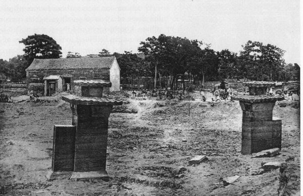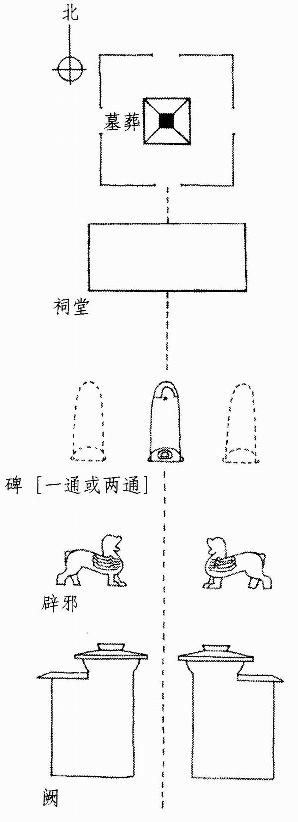 继陈明达之后,一系列围绕阙门的汉代墓葬美术与建筑著述相继问世,其中包括吴曾德的《汉代画像石》(1984)、长广敏雄的《汉 代画像的研究》(1965)和中国科学院主编的《中国古代建筑技术史》 (1985)、杨宽的《中国古代陵寝制度史研究》(1985)等。但这些著述只是以一小节总结汉代石阙的大体状况,尽管材料翔实,但分析讨论并没有超越陈明达的文章。最近出版的安·帕鲁丹(Ann Paludan)的新作《中国的神道:石制墓葬雕像的古典传统》(The Chinese Spirit Road : The Classical Tradition of Stone Tomb Statuary, 1991)是一部令人惊喜之作。这本书虽然不能算是严格意义上的学术专著,但为我们研究汉代墓葬石阙提供了重要的历史背景(图9)。书中还讨论了神道和阙门的象征意义,这是陈明达的文章没有谈到的新观点。