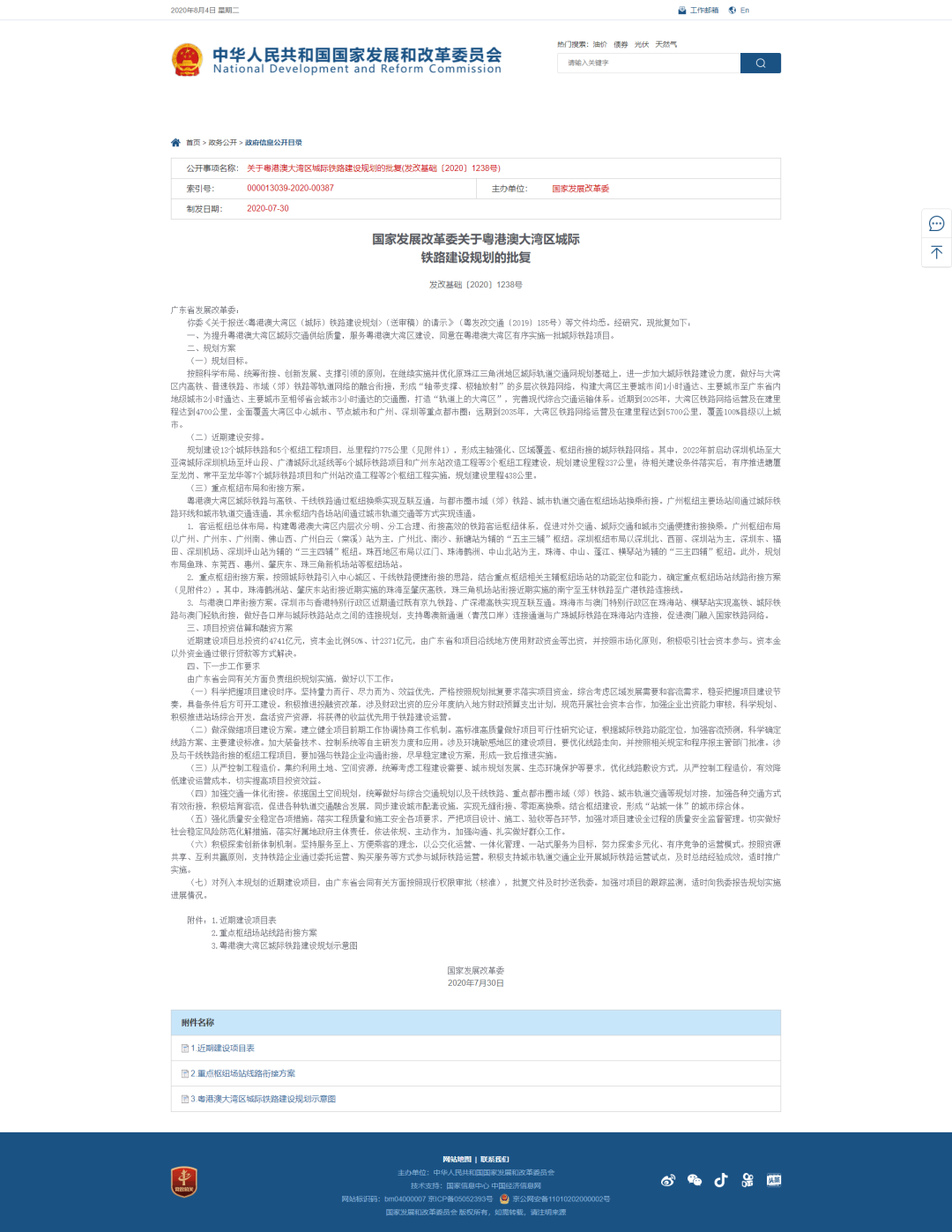 近日,国家发展改革委官方网站挂出一则公告《国家发展改革委关于粤港澳大湾区城际铁路建设规划的批复》(以下简称《批复》)显示,南沙至珠海(中山)城际项目纳入近期建设安排,将在建设条件落实后有序推进。