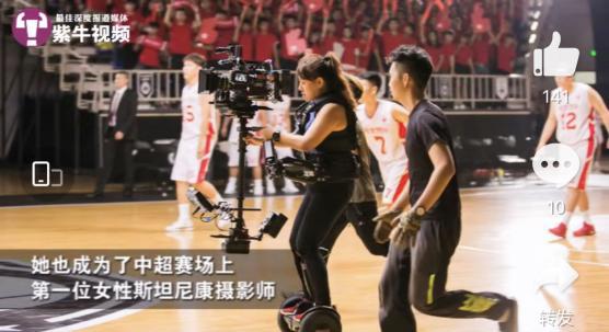 视频中,女孩身穿斯坦尼康,扛着六七十斤的摄影装备,敏捷穿梭于雪山、中超球场等艰苦环境中。