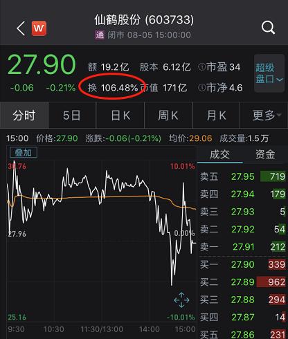 8月5日,A股市场震荡攀升,却出现一个罕见奇观:沪市主板股票仙鹤股份放量震荡,换手率高达106.48%,当天振幅高达16.74%。对于T+1的A股,为何会当天成交量会超过流通股本?