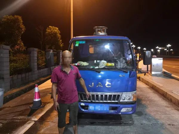 22时20分许,民警突然发现一部小货车在收费站广场减速停车,形迹可疑。执勤民警立即上前进行检查,驾驶员见交警来了,主动承认自己驾驶证被交警扣了,无法出示驾驶证。