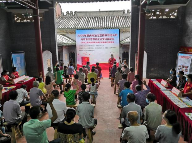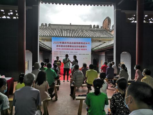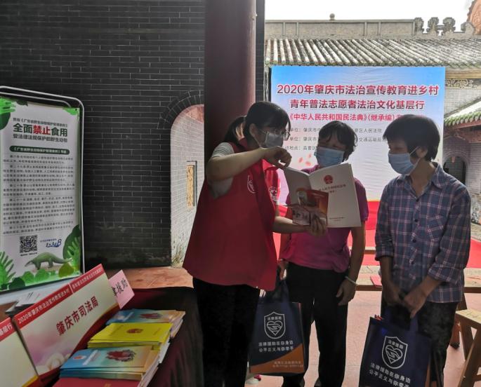 “民法典继承编共四章、45条,对遗产、继承人、遗嘱等多方面内容进行完善,更加尊重被继承人的意志……”8月3日,肇庆市高要区大湾镇禄岸村陆氏祠堂传出洪亮的声音和阵阵掌声。2020年肇庆市法治宣传教育活动走进乡村,老祠堂变身普法新讲堂,普法志愿者们以言近旨远的解读,引导村民学懂弄通做实,有力推动《民法典》“落地生根”。