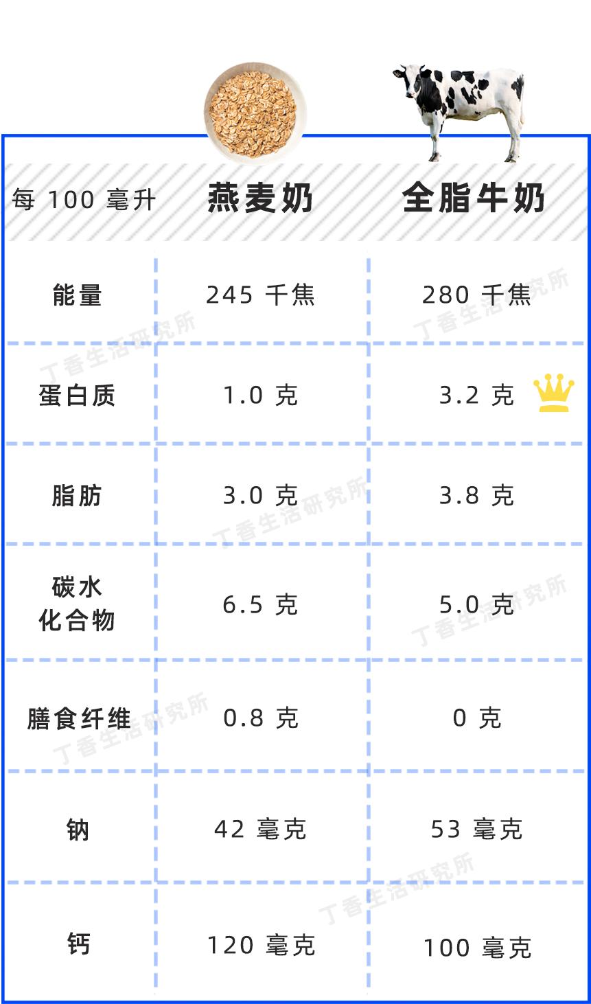 我们喝牛奶的目的主要是为了摄入优质蛋白质和钙,但这两点并不是燕麦奶的优势。所以,如果想用燕麦奶代替牛奶来补充营养,不算一个聪明的选择。