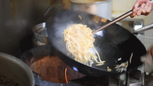 炒薄壳用旺火,用油爆香蒜头,将薄壳倒进锅中翻炒,再添上必不可少的金不换叶子、沙茶、小辣椒,待到薄壳在锅里都已经开口笑就可以起锅了~
