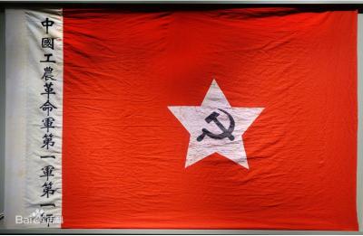 5、1927年9月,毛泽东、卢德铭等在湘赣边界发动秋收起义。部队被改编成工农革命军第一军第一师。毛泽东提出秋收起义应该竖起一面自己的旗帜,并将设计制作党旗的任务交给曾在欧洲留学的何长工。鲜艳的红旗中间是一颗黄色的五角星,星中是镰刀和斧头的图案,靠旗杆有一条10厘米宽的空白,上写着“工农革命军第一军第一师”的番号。就这样,“工农革命军第一军第一师旗”成为中国共产党真正亮出的第一面正式旗帜。