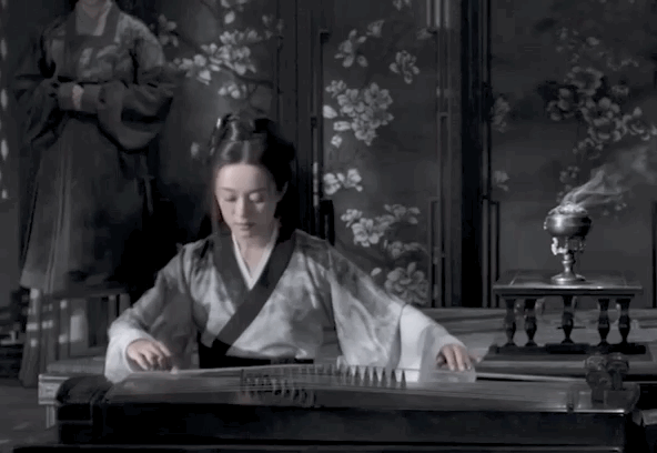 弹琴的孙俪,一袭墨色衣裳,仿佛为角色而生。