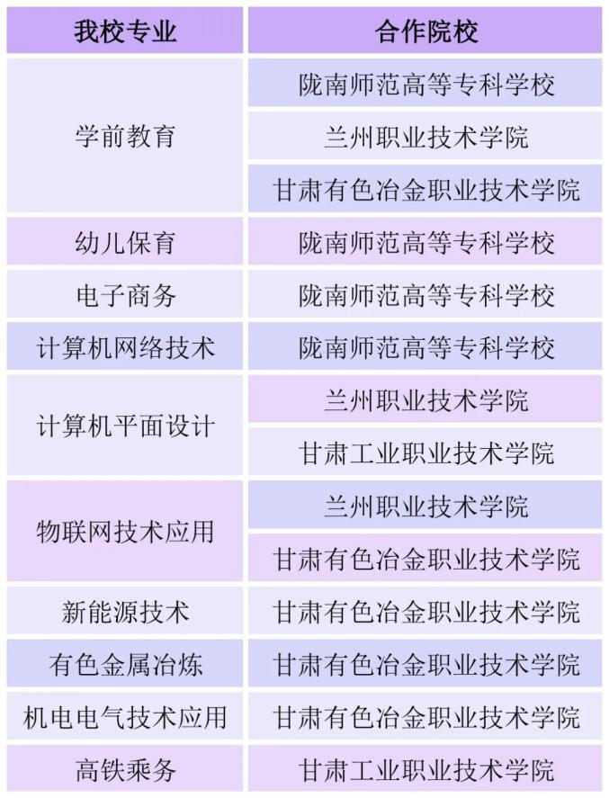 2020年我校中高职一体化(2+3五年一贯制)合作院校
