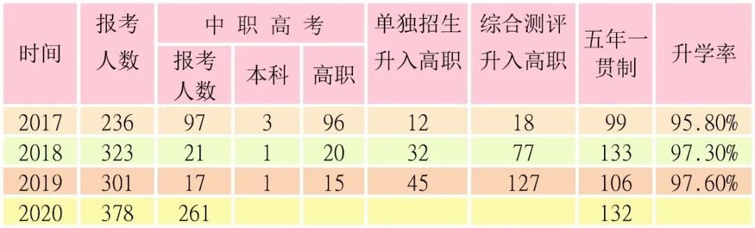 毕业去向:97%以上毕业生升入应用型高等院校(本科、高职)就读。