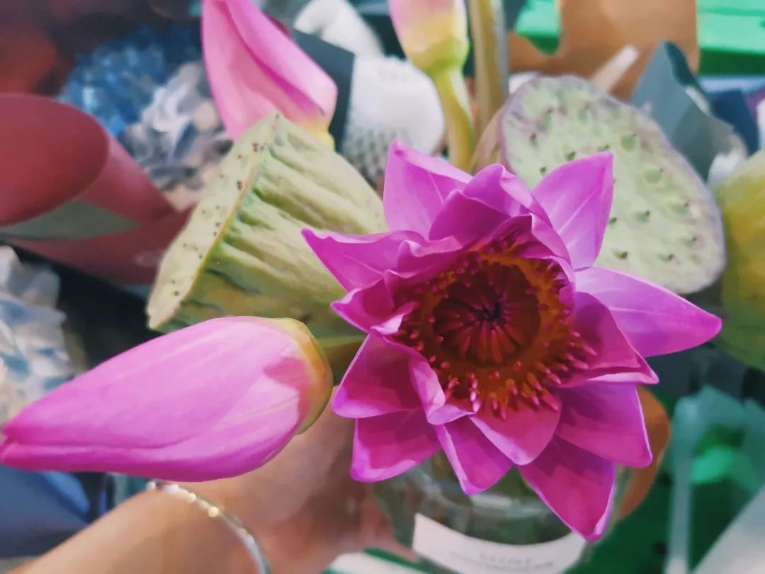 主办方透露,鲜花的品种每周都会更换,本周供应的是当季的鲜花如荷花莲蓬、绣球、剑兰、多头玫瑰等。