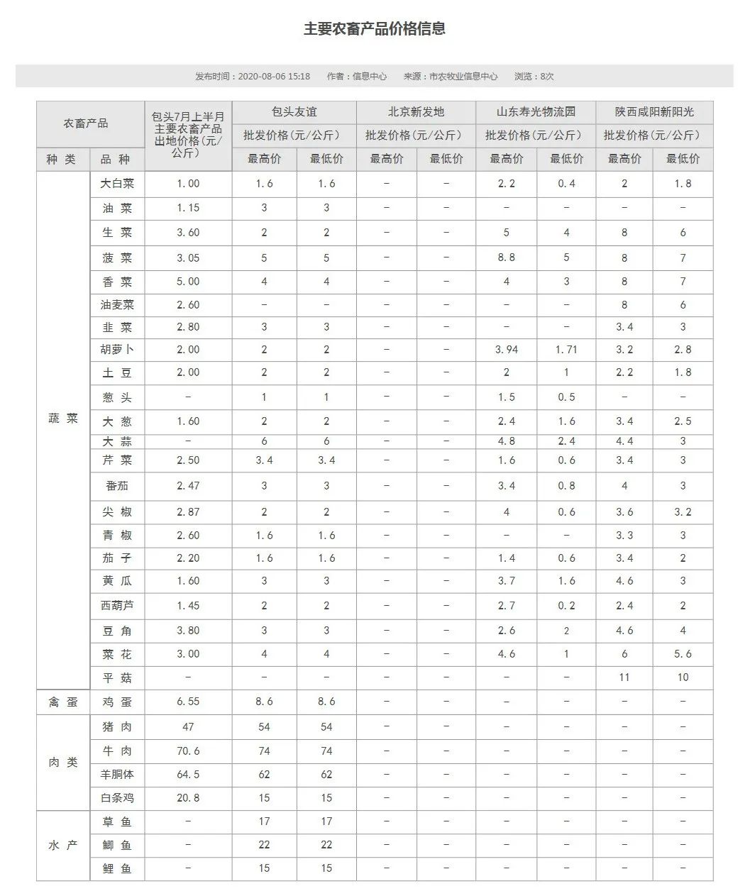 我市主要农畜产品最新价格信息!我们可以看到,对比7月上半月价格信息,鸡蛋和猪肉、牛肉价格小幅上涨!