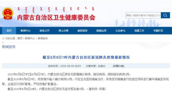 截至2020年8月8日24时,内蒙古自治区报告无症状感染者0例。(皇利华 供稿)