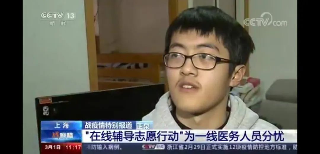 央视报道张正泉同学参与“在线辅导志愿行动”