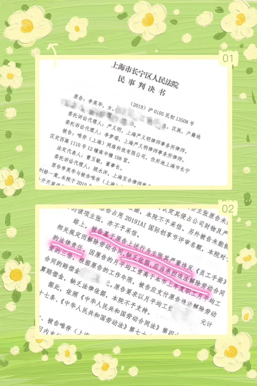 李英华晒出了一审二审胜诉的判决书,长达16个月的劳动纠纷终于有了结局。