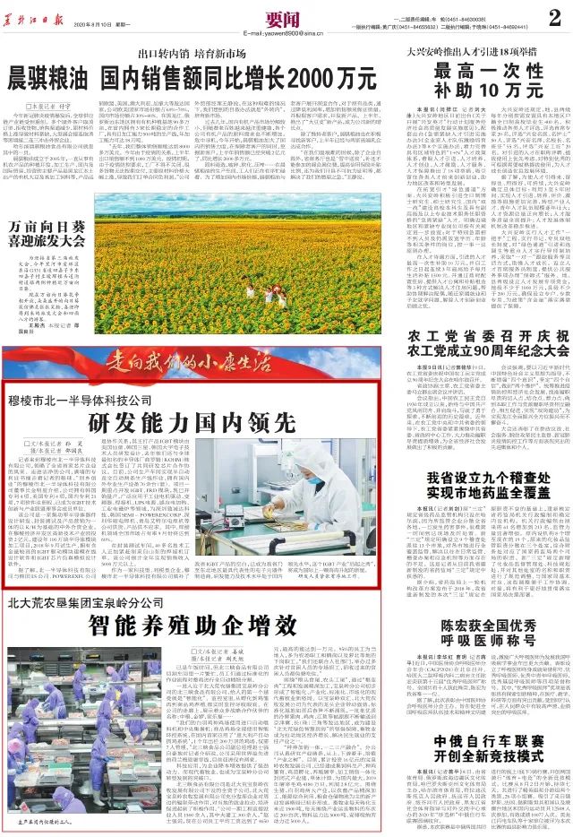 【黑龙江日报】要闻版:穆棱市北一半导体科技公司 研发能力国内领先