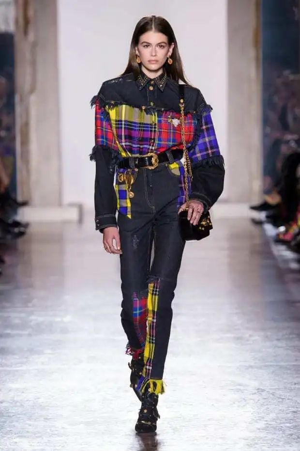 牛仔和格纹拼接的款式