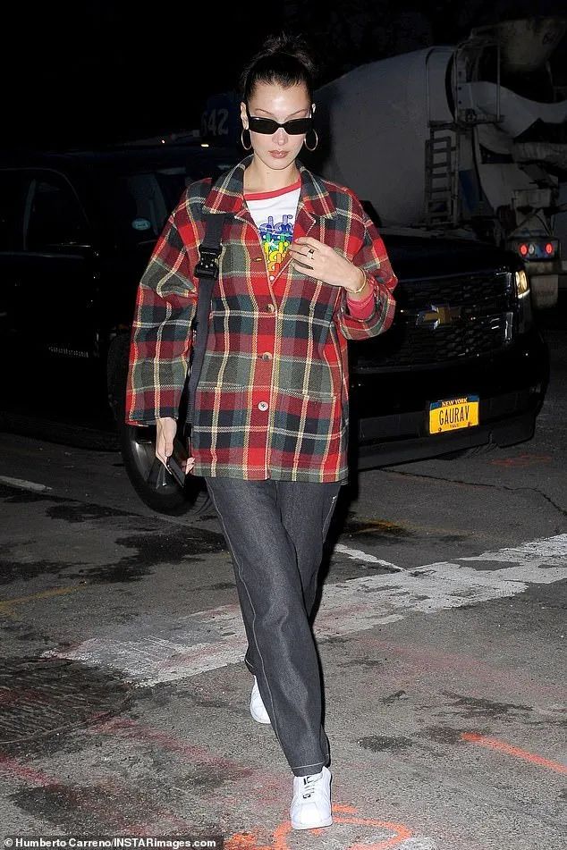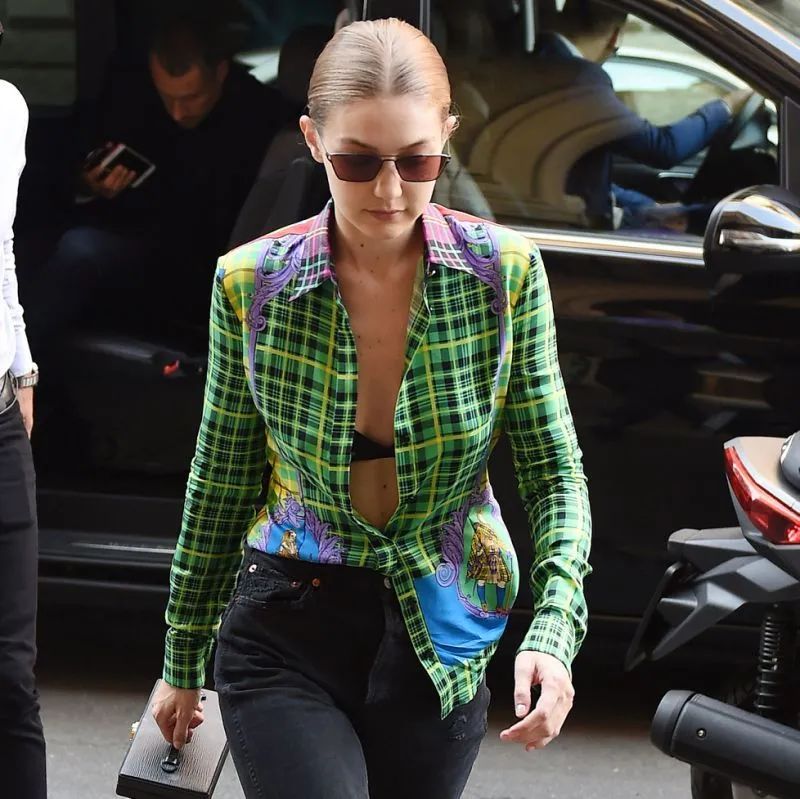 超模Irina选择不同格纹衬衫