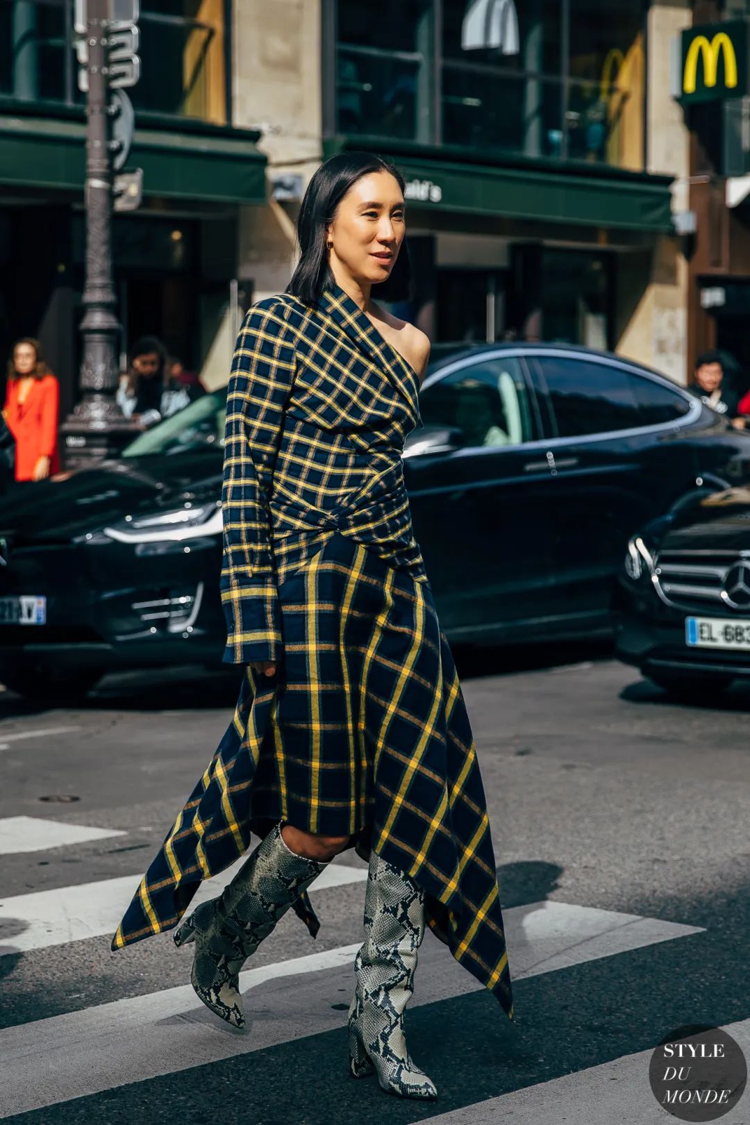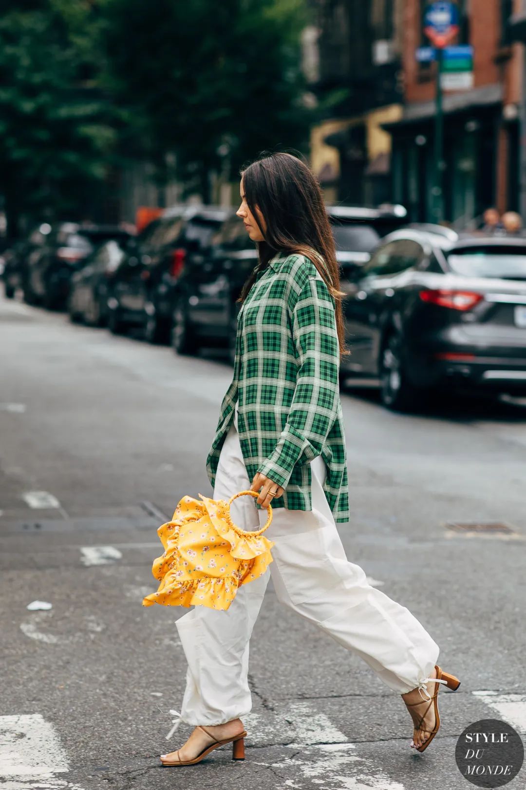 下摆随风翻动再普通的格纹也不会呆板