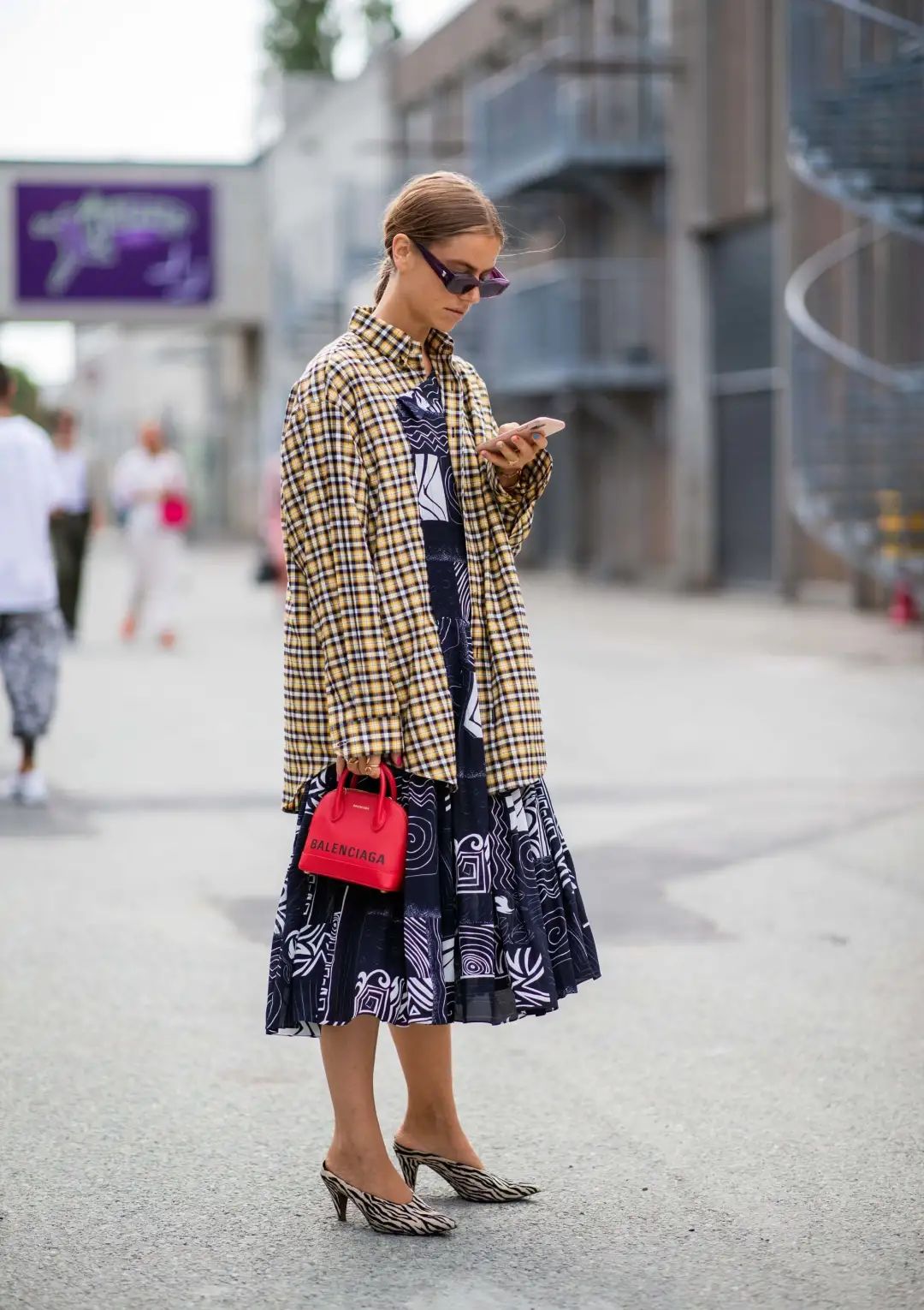 就是oversize格纹衬衫日常造型