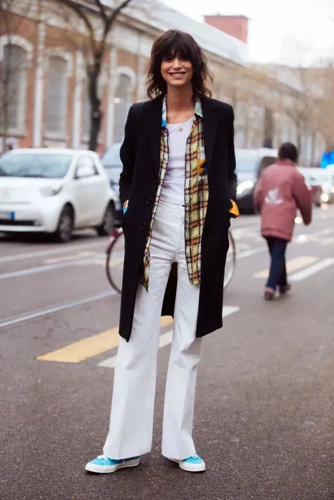 搭配阔腿牛仔裤和板鞋