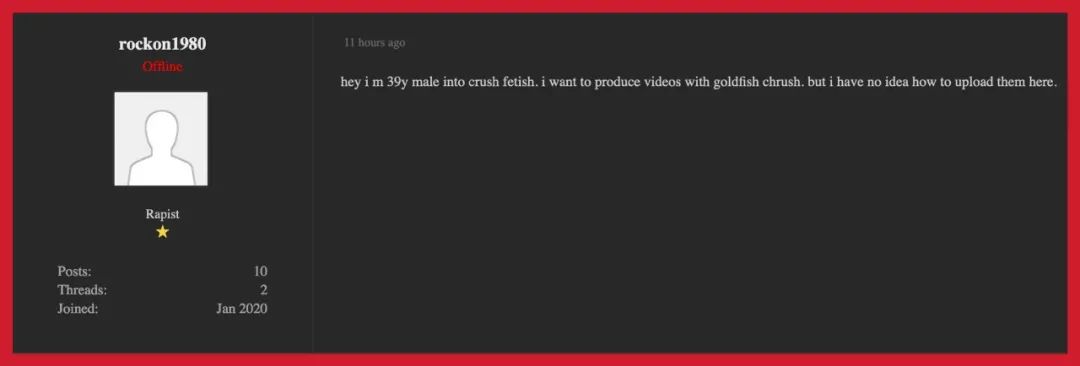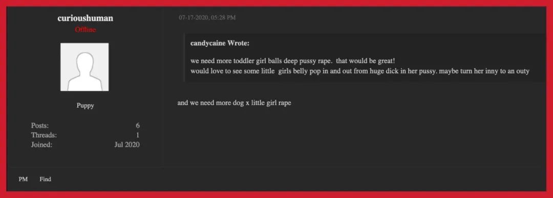 比如说这人就说道:“想看和女童相关的色情影片......需要一些儿童和狗的视频。”