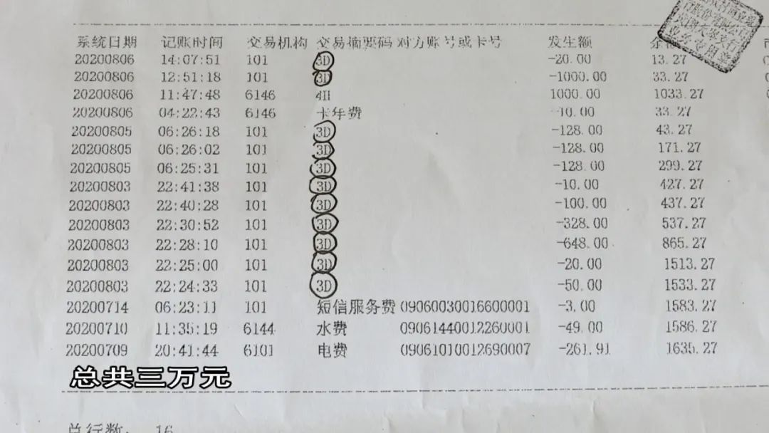 到银行打流水单才发现
