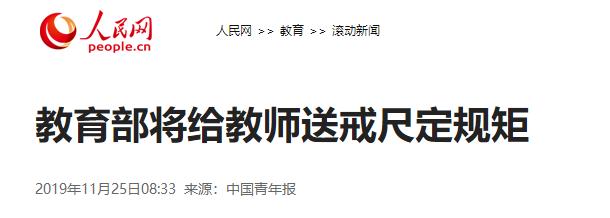 2019年11月22日,教育部发布了《中小学教师实施教育惩戒规则》(征求意见稿),指出教育惩戒是教师履行教育教学职责的必要手段和法定职权。