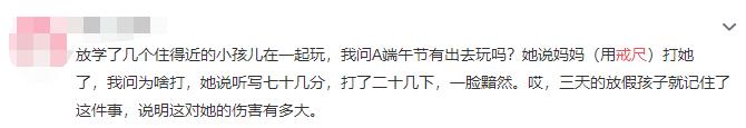 不少家长说自己打孩子只是点到为止不会伤害孩子,但问题是家长很难去界定什么是轻、什么是重,而且在气头上也很可能控制不住自己。