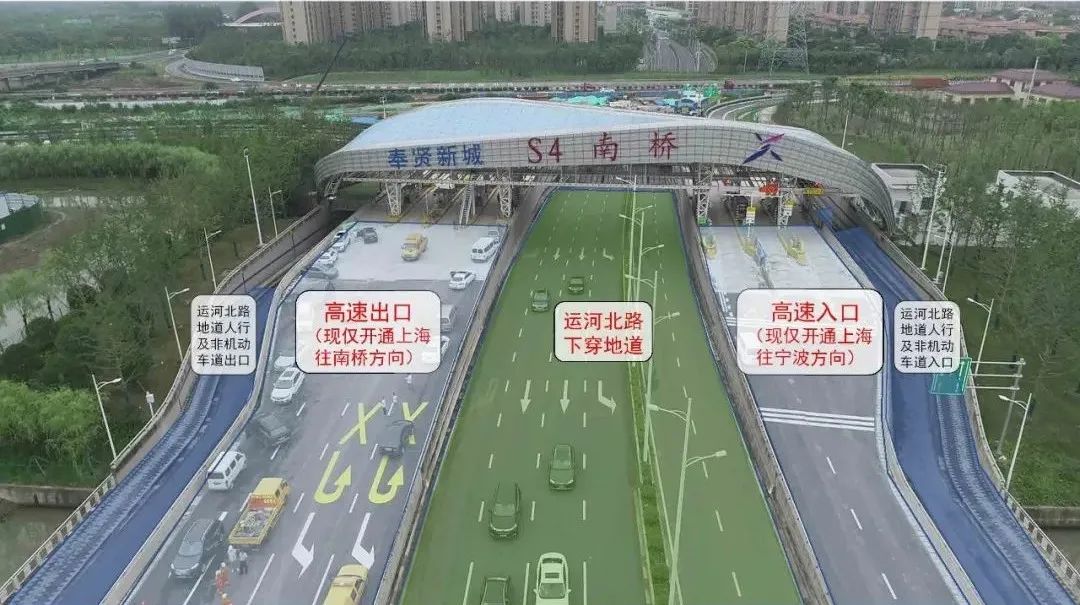 S4高速南桥西出入口目前已经试运行,该出入口与目前已运行的地道入口紧邻,为方便驾驶员有序快速驶入各自所需的方向,在远东路/运河北路口南进口设置了两条右转专用车道区分为地道和高速方向(如上图所示)。