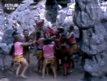 比如,悟空和众猴去探水帘洞,大家好不热闹,弹幕及时给该场面来个神总结:多猴运动。