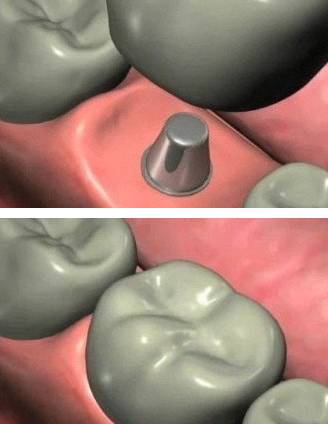在差不多2--3周后,软组织成形后。种植牙医生会用永久基台换下愈合基台。