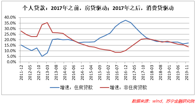 从我国居民负债结构看,2017年之前,个人贷款高增长主要是房贷驱动;2017年之后,房贷增速开始下行,消费贷接棒,成为居民杠杆率持续高增长的主要驱动力量。