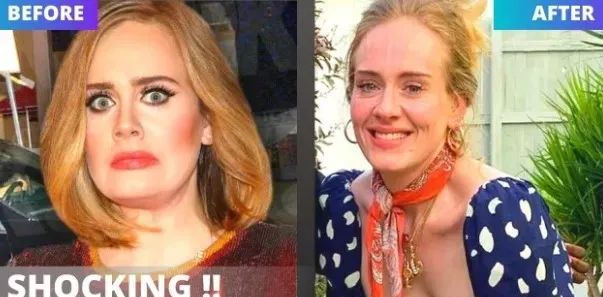 国际著名歌手阿黛尔离婚后,一年瘦下了90斤。看照片就能明显发现皮肤变松弛了。不仅法令纹加重,之前的满满胶原蛋白也都流失了,年龄感也明显增加了许多。