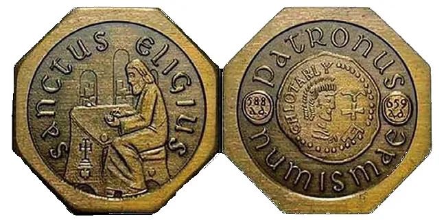 圣•艾里基乌斯担任了达戈贝特一世国王的首席顾问,成功地影响布列塔尼亚王子同达尔贝尔签订和平协议而声名远播。圣•艾里基乌斯还修建教堂,感化教育,反对买卖圣职。他虽去世于公元659年,身后自带光环并外溢,成为圣人,千年后还被许多行业尊崇为祖师爷以纪念他。法国巴黎圣马德莱娜教堂彩色玻璃画就是16世纪创作的圣•艾里基乌斯在工作的画像,1967年法国邮政还为此发行了邮票。至今每年12月9日,巴黎圣母院都会为圣•艾里基乌斯兄弟会的成员奉献一台弥撒,以答谢17世纪的巴黎金匠们对圣母院的奉献。
