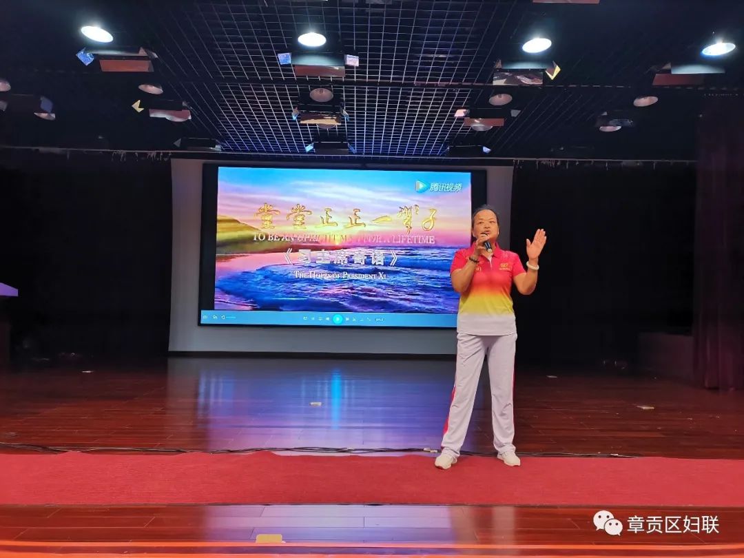 增强实践技能,7月31日晚,章贡区妇联还组织所有参训学员前往赣江街道南市街社区小戏台广场观摩学习“赣南新妇女”运动宣讲活动。市妇联党组书记、主席廖丽萍、市妇联调研员罗云莅临现场指导。宣讲活动围绕“赣南新妇女”运动十个方面内容开展,有小品、情景剧、快板、朗诵等,还邀请群众参与互动,活动现场十分热闹。