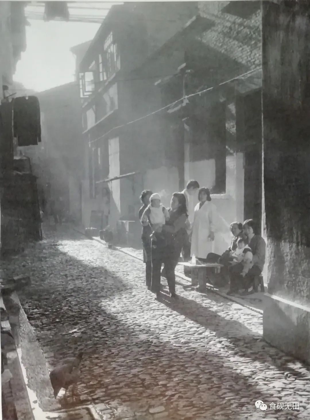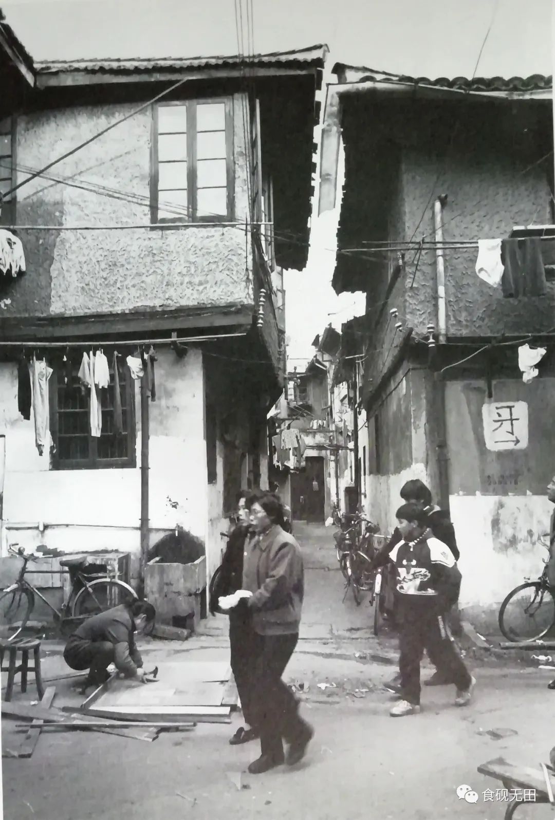 片中的过街楼还装有两个晾衣架,据此可知这过街楼上住着两户人家。这种“螺蛳壳”在弄堂里厢无处不在。