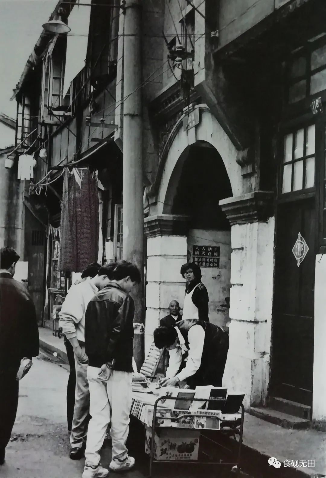 老底子,弄堂口会有小书摊,到了90年代已少见了。图12中,搿小青年用屋里厢用过的钢丝床架,设摊卖书。