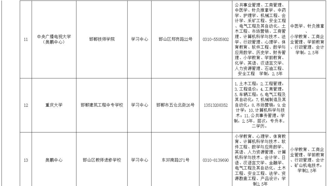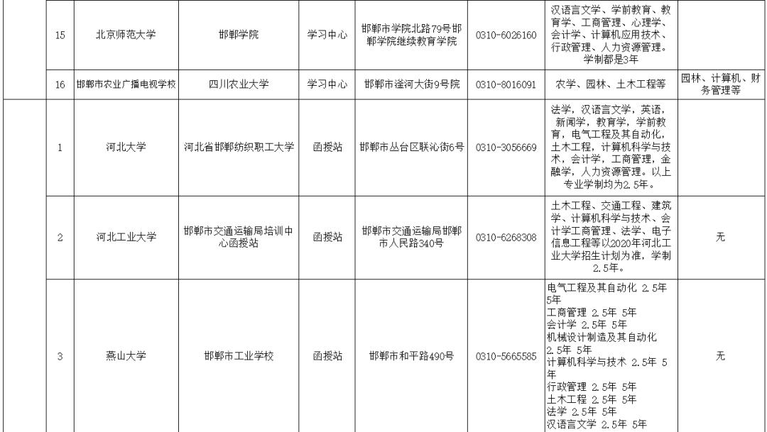 原标题:《邯郸这些地方具有成人高等学历教育招生资质》