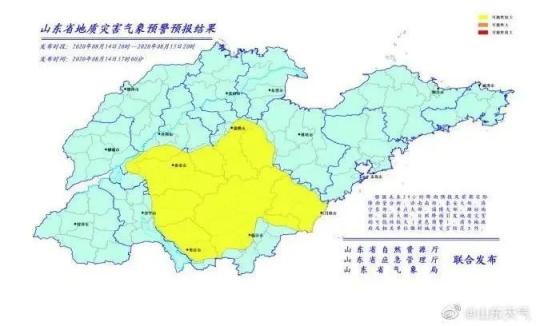 根据未来24小时降雨预报及前期实际降雨量分析,济南南部、泰安大部、济宁东部、枣庄大部、淄博大部、潍坊西部、临沂大部、日照降雨引发地质灾害的可能性较大(黄色预警),请当地政府及相关单位做好地质灾害防范工作。