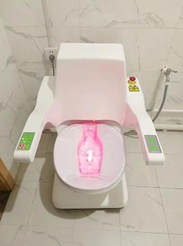 激光坐浴机采用了坐便盆式的外形设计,能够改善传统中药坐浴的不便性,尤其是对年长、关节活动欠佳的患者,其周围有扶手设计,给患者带来较大的舒适度。激光坐浴机的恒温设计,能够弥补传统坐浴时间长时温度下降的不足,其温度控制在43℃,可避免因温度过高引起烫伤,温度过低可能会影响疗效。