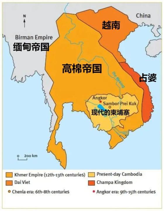 从7世纪骠国建立到13世纪缅甸为蒙古人征服,这段时间缅甸在中南半岛的邻居都是柬埔寨(吴哥帝国)。对于弱小且四分五裂的缅甸来说,强大的柬埔寨是其不可能战胜的敌人。当然了这个时候的缅甸自顾不暇,也没有能力去侵略柬埔寨。