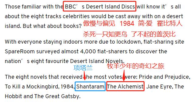 BBC读者评选去荒岛必带的8本书里,《项塔兰》入选,与《简爱》等世界名著放在一起: