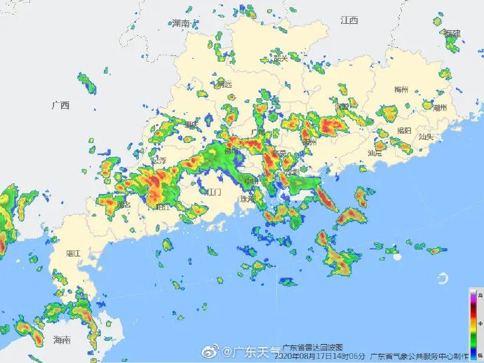 18日夜间-20日,粤西市县和江门有暴雨到大暴雨,珠江三角洲南部市县和汕尾有大雨到暴雨。