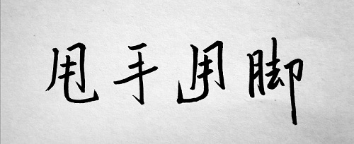 扬州人称说话随便、举止轻浮的人叫“甩liào”,又称甩货,“liào”在词典里记录的是材料的“料”。这种人的形象有个说法叫“甩手撩脚”,而“撩”字在扬州还有个更形象的写法,就是“甩”字最后一笔竖弯钩,其弯钩弯到左边。“甩”字是指事造字法,“liào”字当然也可以这样造,两个字放在一起,就显得很有意思。