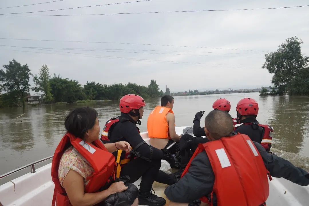 总队调集成都支队10人1车1舟参与救援,正在当地党委政府领导下逐一入户疏散被困群众。